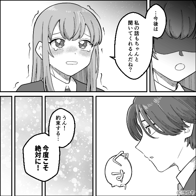 手紙を読み、主人公に頭を下げた夫。 そして「君が望むなら母さんたちとは今後一切関わらない」と約束します。