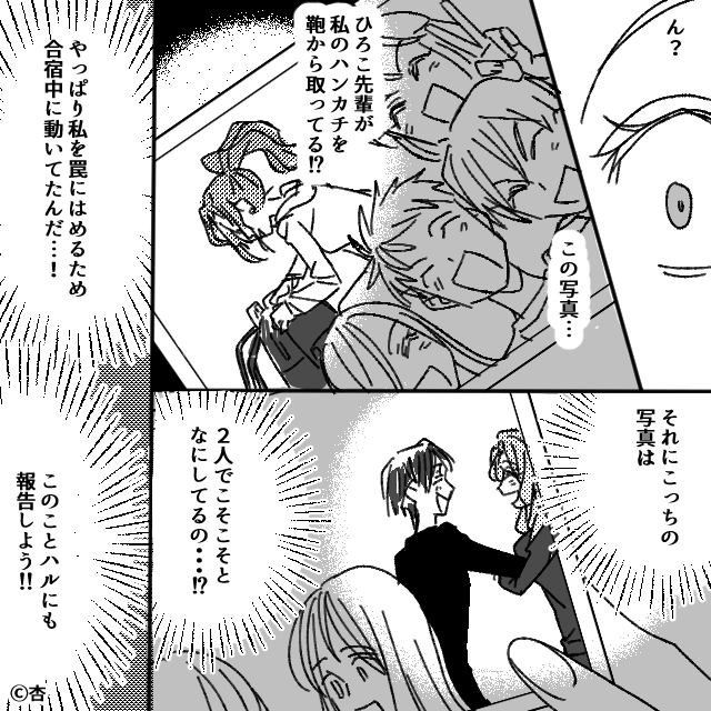 今回は『キャンパスライフを壊した“ある人物”の正体』を紹介します。 先輩に嫌がらせをされていることに気づいた主人公。 そこで主人公は、合宿の写真を確認し…。