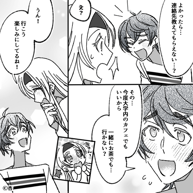 その後、サークルには新しいメンバーが入ってきます。 そして歓迎会で、主人公は新メンバーに連絡先を聞かれたのでした。