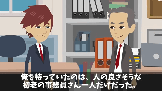 バスを降りて、ローカル線に乗り越えた主人公は、ようやく新しい職場に到着しました。 すると、人のよさそうな初老の事務員が主人公を待っていて…。