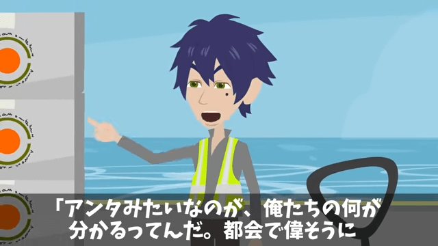 若い漁師は何かと主人公に突っかかってきました。 そして若い漁師は「都会で偉そうにしてたのが、何かやらかして飛ばされてきたんだろ」と主人公に言ったのです。