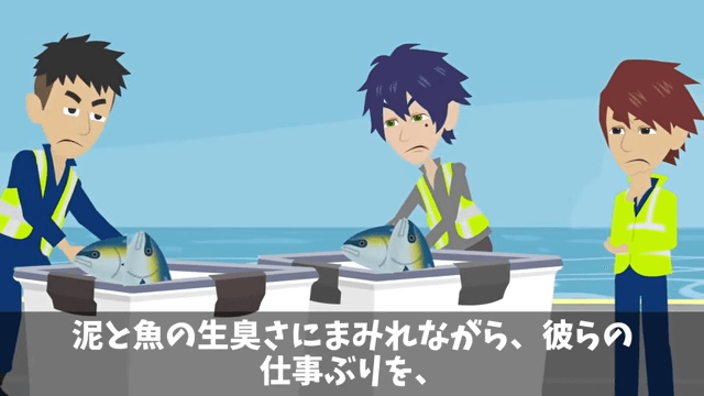 主人公の行動は、なかなか漁師たちに受け入れられませんでした。 それでも主人公は毎日港に通い続け、漁師たちの仕事ぶりを目に焼きつけます。