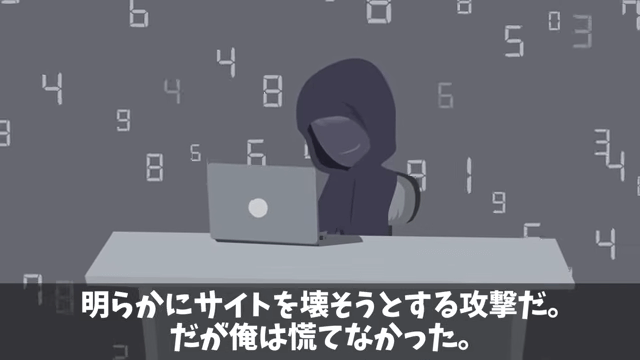 今回は『同僚にはめられ左遷されたので、仕返しした結果』を紹介します。 同僚は主人公のサイトへのサイバー攻撃をクラッカーに依頼しました。 一方、パソコンの前で待ち構えていた主人公は「…来たか」とつぶやき…。
