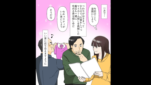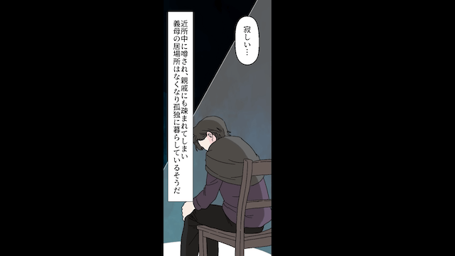 義母は逮捕後すぐに釈放されましたが、主人公夫婦とも義父とも縁が切れたため、孤独な生活を送るはめになったようです。 一方、つわりが落ち着いた主人公は、夫とともに義父も一緒に住める家を探し始めたのでした。