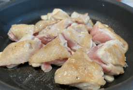 (2)鶏肉を焼く 溜まった怒りの熱量をフライパンにぶつけましょう。 次に鶏肉に塩胡椒し、薄力粉をまぶします。 フライパンに油とにんにくを熱し、鶏肉を皮目から投入。 ジューッという音とともに、今日言えなかった皮肉を焼き尽くしてください。 皮がパリッとしたら、裏返し、あなたの強さを表面に焼き付けます。