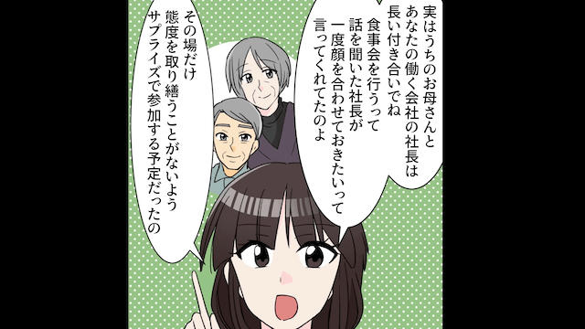 そこで主人公が夫の会社の社長も同席予定だったことを伝えると、夫は焦り始めて…。