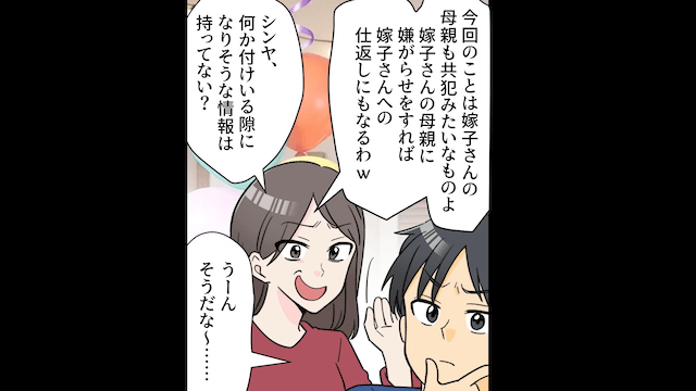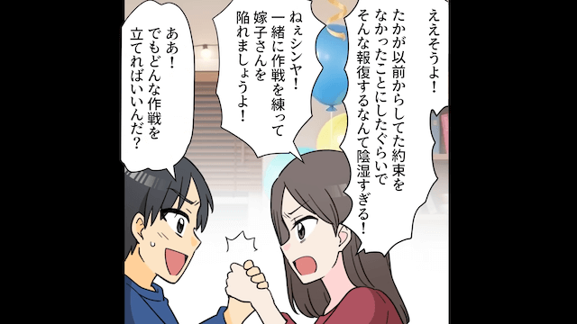 主人公を逆恨みした夫は義姉に愚痴をこぼし、主人公を陥れるための作戦を考え始めます。 そして2人は、主人公の実家に住み着いて嫌がらせをする作戦を思いついたのでした。