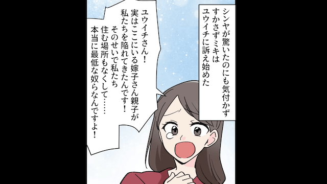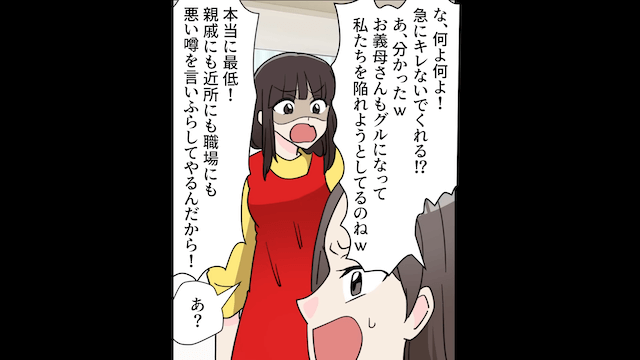 主人公に責任転嫁をして、嘘の主張を繰り返す夫と義姉。 すると母は「うちの娘に悪意を向けるのを母親の私が見過ごすとでも!?」と声を荒らげたのです。