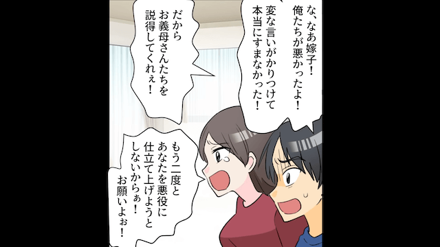 その言葉を聞いて焦った夫と義姉は主人公にすがりますが、主人公が助けるはずもなく…。