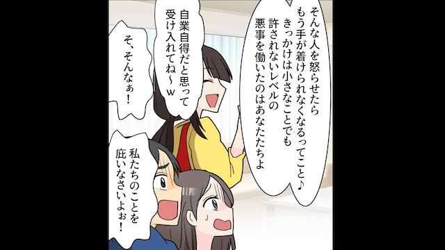 今回は『私の実家を空き家扱いして義姉に入居させる夫「明日引越すって!」義姉「片づけよろしく(笑)」→跡形もなく片づけた結果』を紹介します。 夫と義姉は「俺たちが悪かったよ」「もう二度とあなたを悪役に仕立て上げようとしないからぁ!」と主人公にすがり、自分たちの悪事を自白しました。 しかし主人公がそんな2人を助けるはずもなく…。