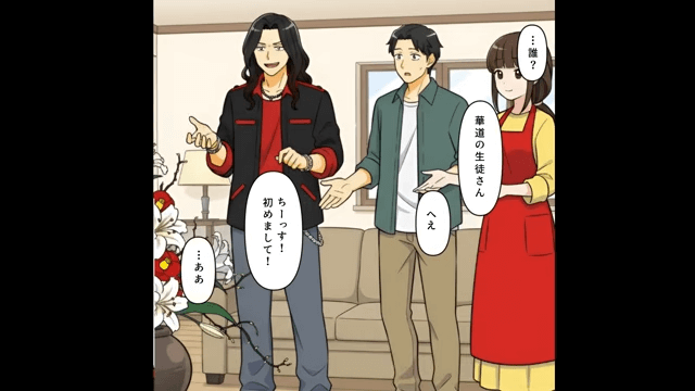 派手な服装の男性がやってきた