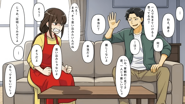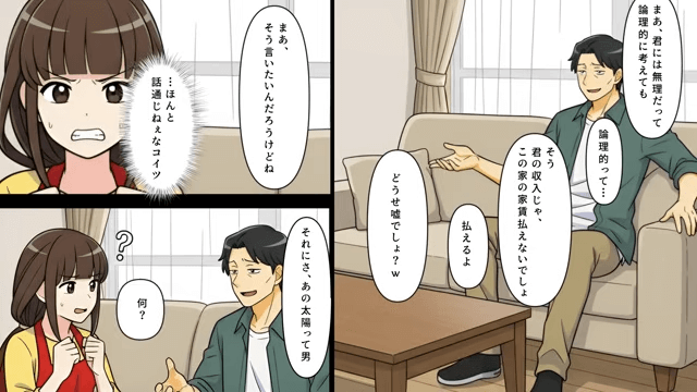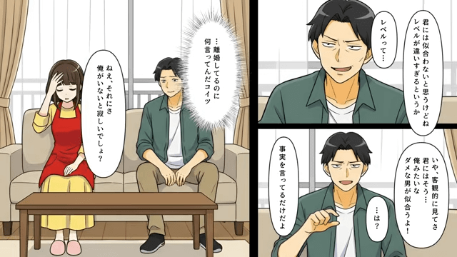 夫は主人公の収入では家賃が払えないはずだと言ってきました。 さらに夫は、主人公には自分のようなダメな男性が似合うと言い始めて…。