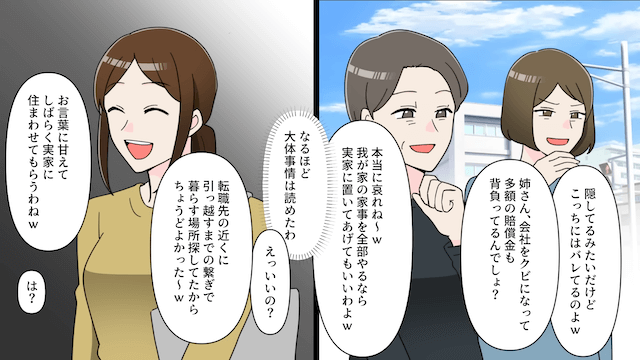 今回は『妹だけを溺愛する母親「他人はでてけ!」私「はーい」→速攻で仕送りを止めた結果』を紹介します。 義弟は母と妹に主人公が無職になったと嘘を吹き込み、仕送りの全額を自分が負担しているかのように振る舞っていました。 そんなある日、母と妹は主人公に「恥知らずで哀れな姉さんじゃん」「相変わらず惨めな一人暮らししてるの?」と声をかけて…。