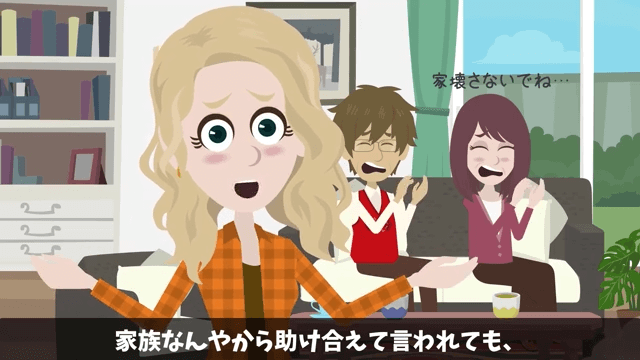 今回は『無断で新築を売った義姉夫婦「2000万円で売れたから全額貰うね(笑)」私「家持ってないけど?」事実を伝えた結果』を紹介します。 どうしてもお金を借りたい兄は「家族なんだから、こういうときに助け合わなきゃだろ?」と主人公に言いました。 しかし主人公は「しつこい!」と兄を一喝して…。