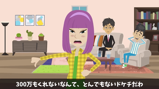 義姉はこんなに立派な家が建てられるのにお金をくれないのはケチだと主人公に言います。 それを聞いた主人公は「まだそんなこと言うてんの?」と呆れました。