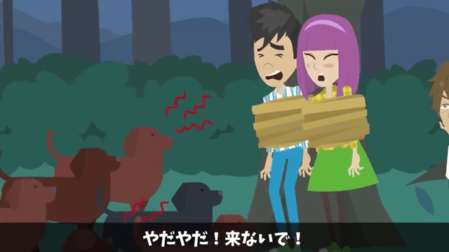 父は野犬たちのほうが兄と義姉よりも利口で努力家だと言います。 そして野犬たちが迫ってくると、義姉は「やだやだ!来ないで!」と追い払おうとしました。