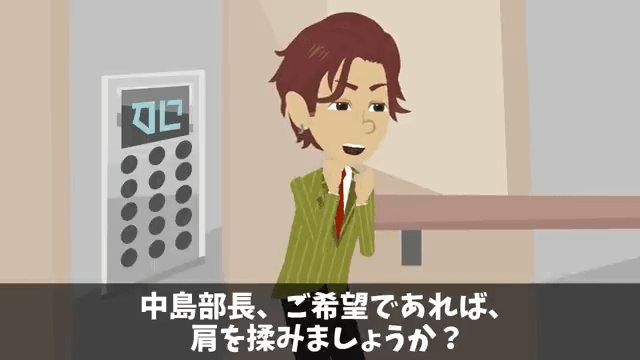 同級生は商談のために部長と外資系企業に来ています。 そして、エレベーターで部長の肩を揉もうとする同級生に、部長は「君はよく気が利くねえ」と言いました。