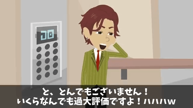 今回は『同窓会で俺を見下す同級生「高卒とは喋る義務ないから(笑)」俺「わかった」→その後フル無視した結果』を紹介します。 商談のために外資系企業に来ていた同級生は、エレベーターで部長の肩を揉もうとしました。 すると部長は「君はよく気が利くねえ」「こりゃ、将来は社長も夢ではないかもな!」と同級生に言い…。
