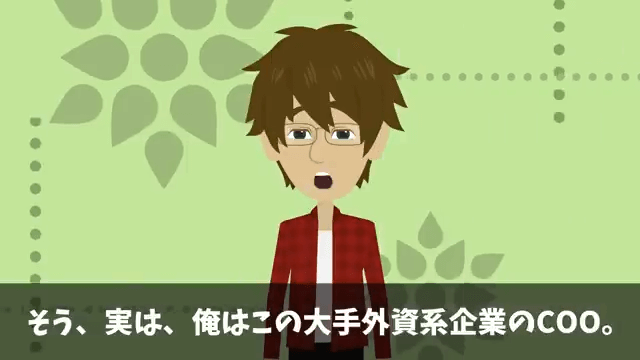 主人公が同窓会での出来事を婚約者と担当者に話すと、担当者は主人公にそのような態度を取るなんて信じられないと言いました。 実は主人公はこの外資系企業のCOOを務めていて…。