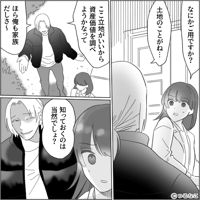 今回は『祖父の死後、次々とトラブルが降りかかった話』を紹介します。 「あ〜今日は疲れた…」とつぶやきながら帰宅した主人公。 すると家の前に、ニヤニヤと笑う男性が立っていて…。