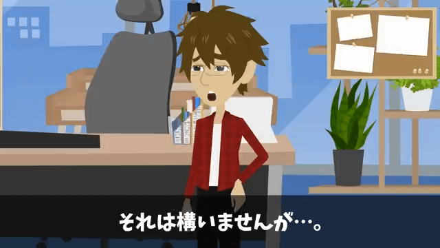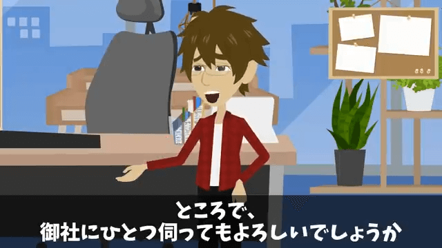 同級生が男性に取り押さえられた翌日、社長と部長が主人公に謝罪に来ました。 そこで主人公は「御社にひとつ伺ってもよろしいでしょうか」と言い…。