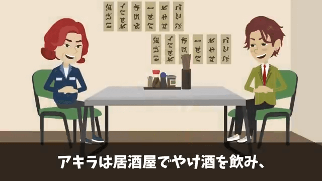 居酒屋でやけ酒を飲み…