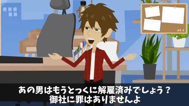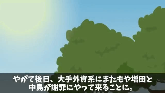 刑務所長の友人から同級生たちの話を聞いた主人公は、思わず笑ってしまいます。 そして後日、社長と部長が主人公のもとに謝罪に来ました。