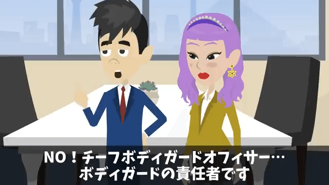 大きな企業の面接にやってきた同級生は、ボディガードの男性と女性を見て驚きます。 すると男性は、自分が外資系企業のCBOであることを同級生に話しました。