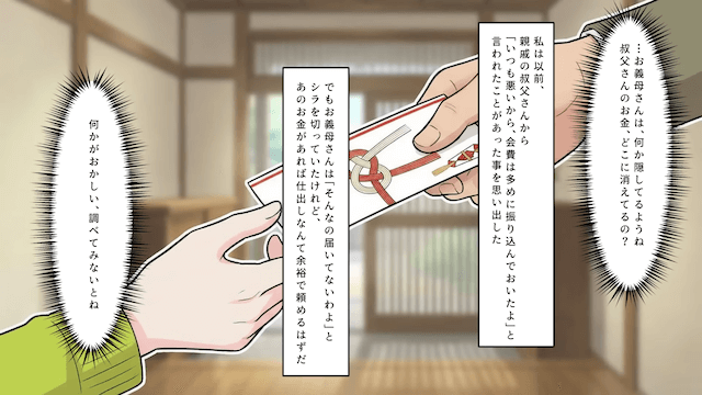 今回は『義母から嫁いびりされるので【全部無視した】結果』を紹介します。 親戚たちにお金をもらっているにもかかわらず、今まで通り弁当を頼まずに主人公に手料理をお願いする義母。 突然節約だと言い始めた義母に、主人公は違和感を抱き…。