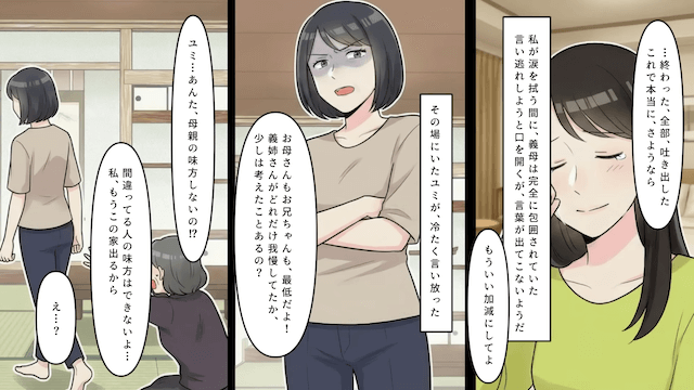 今回は『義母から嫁いびりされるので【全部無視した】結果』を紹介します。 主人公の剣幕に押され、言葉を失う夫。 そして義母も「悪気はなかったの、許して」と言いながら、その場に崩れ落ちたのでした。