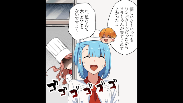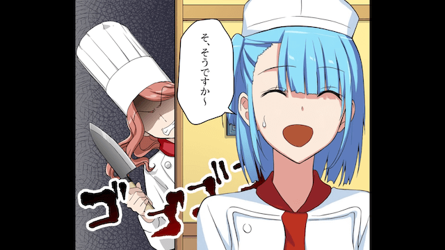 理不尽な料理長を前に前途多難だと感じたものの、その後はなんとか料理をさせてもらえるようになった主人公。 そして客とスタッフに料理を褒めてもらえたのですが、料理長からの視線は痛く…。