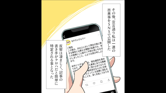 今回は『学生時代いじめてきた同級生にCEOになって反撃した結果』を紹介します。 嘘の記事を書いたことが記者にバレてしまい、内定取り消しを告げられた同級生。 「反省してるんです!」と必死に伝えるも、内定取り消しは覆らず…。