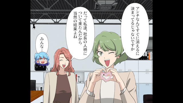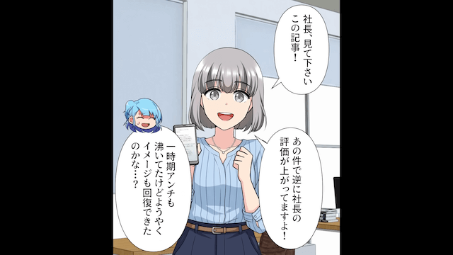 憧れだった出版社に内定を取り消され、さらに業界内に悪評が広まって再就職もできなくなった同級生。 一方、今回の件で主人公の評価は上がり、いい仲間にも恵まれた主人公は幸せを感じるのでした。
