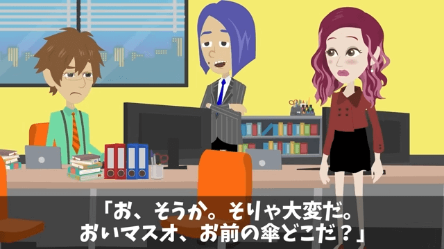 今回は『上司「お前に5年前に借りた車、事故ったから返す!」俺「それレンタカーだけど?」』を紹介します。 女性社員は雨が降ってきたことを所長に報告しました。 さらに女性社員は、傘を持ってこなかったことを所長に話して…。