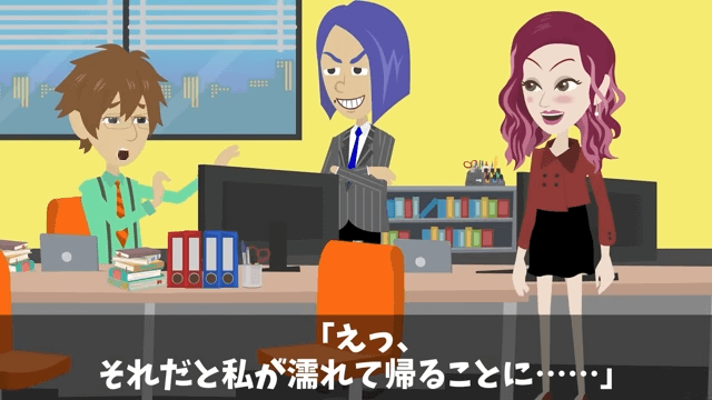 今回は『上司「お前に5年前に借りた車、事故ったから返す!」俺「それレンタカーだけど?」』を紹介します。 女性社員は雨が降ってきたことを所長に報告しました。 さらに女性社員は、傘を持ってこなかったことを所長に話して…。