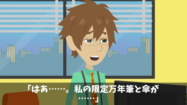 所長から主人公の傘を渡された女性社員は「うわ、持ち手ベタベタしてるしぃ。まあないよりマシかぁ」と言いました。 そして所長たちは、主人公に戸締まりを任せてそのまま帰っていったのです。