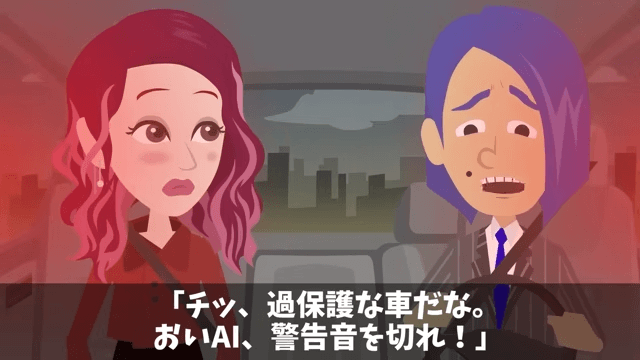 車内に警告音が鳴り響いたため、所長はAIに警告音を切らせました。 そして所長は、主人公にはもったいない車だと言い…。
