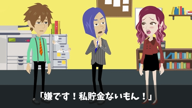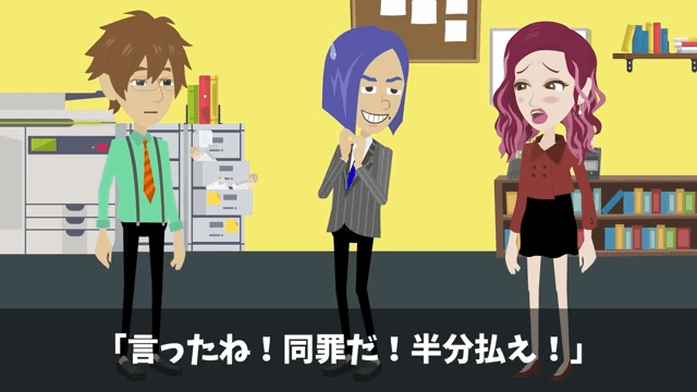 焦った所長は女性社員に向かって「同罪だ!半分払え!」と言いました。 しかし女性社員は「嫌です!私貯金ないもん!」と言い…。
