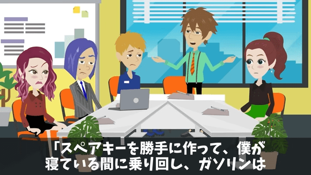 主人公は、所長が勝手に主人公の車を乗り回していたことを指摘しました。 それを聞いた男性社員は「ご、5年も…?犯罪じゃないですか!」と驚いて…。