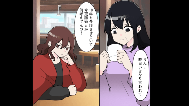 ある日、夫に容姿をバカにされ、離婚を突きつけられた主人公。 ショックを受けた主人公が友人に相談すると、友人も驚愕して夫の行動に怒ったのでした。