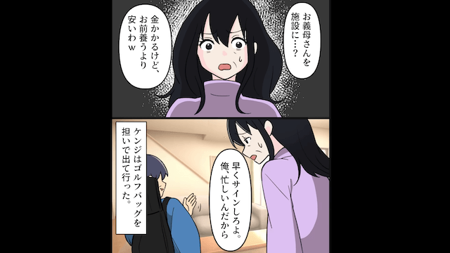 今回は『義母を介護した私に離婚宣言する夫の末路』を紹介します。 主人公と話し合う気もなく、離婚届へのサインを催促してくる夫。 さらに義母についても「施設にでも入れりゃいいだろ」と言い出して…。
