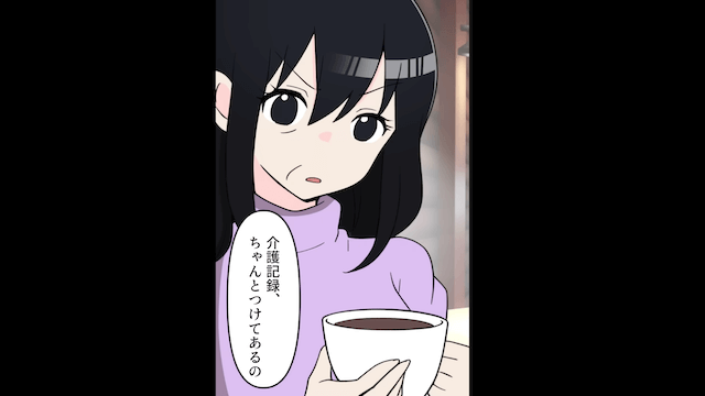 そして友人に証拠集めを勧められた主人公は「実はね、介護記録ちゃんとつけてあるの」と話し…。