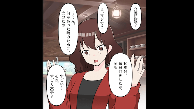 今回は『義母を介護した私に離婚宣言する夫の末路』を紹介します。 友人の情報によって、夫が浮気している可能性があることを知った主人公。 友人に証拠集めを勧められた主人公は「実はね、介護記録ちゃんとつけてあるの」と話し出して…。