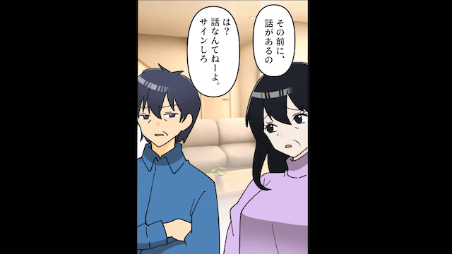 探偵が集めてくれた証拠を確認した主人公は、サインを催促してきた夫に「あなた浮気してるでしょ」と言い放ちました。 さらに主人公が証拠を見せると、夫は「違う!これは…」と焦り始めて…。