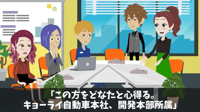 着替えた主人公を前に、所長は「な…なんだそれ…コスプレか?」と言いました。 それを聞いた監査役は「控えなさい!」と所長を注意し、主人公の正体を明かし始めたのです。