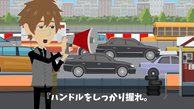 主人公は速く走りたい欲求を抑えることが一番の更生プログラムだと所長に伝えます。 そして主人公は「ハンドルをしっかり握れ」と所長に声をかけました。