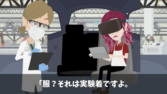 研究員が「吐いても構いませんが、手は止めないでください」と言うと、女性社員は「いやあああ!私のお気に入りの服がぁ!」と悲鳴を上げました。 すると研究員は、女性社員の着ている服が実験着であることを伝えて…。