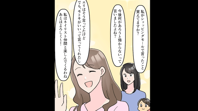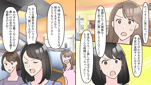 母との買い物中、偶然義姉に会ってしまい強引に子守りを頼まれた主人公。 非常識すぎる義姉にうんざりした主人公は「今後は子どもたちを預かりません」とはっきり言いました。