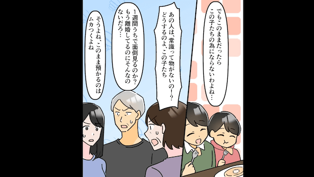 夫に甥たちを任せて実家に帰り、1週間後に帰宅した主人公。 そして主人公は、子守りで疲弊している夫に離婚を突きつけたのです。