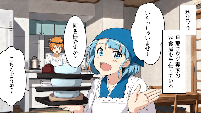 今回は『定食屋を見下した“自称勝ち組ママたち”の末路』を紹介します。 夫の実家である定食屋で働いている主人公。 店は常連客が多く、お昼どきはサラリーマンや仕事中の人で混み合っていました。
